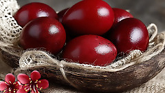 Погружаю яйца в раствор — через час на столе яйца цвета королевской мантии: