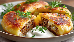 Натрите картофель, сформируйте котлеты с фаршем, обжарьте. Вкусные зразы с