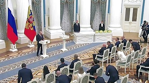 Путин вместе с российскими боксерами поднял бокал шампанского