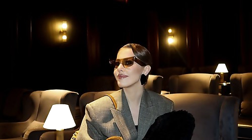 Ксения Собчак в костюме с гигантским помпоном снялась в кинотеатре