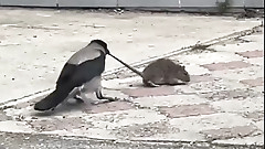 Американцы восхитились российской вороной, которая "булила крысу" в